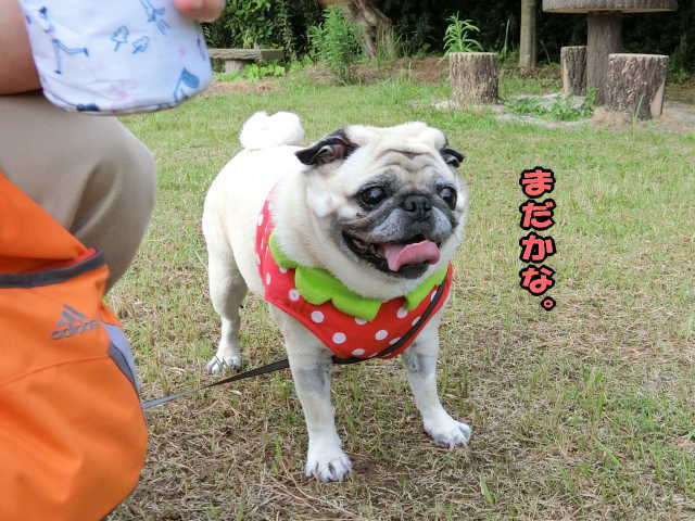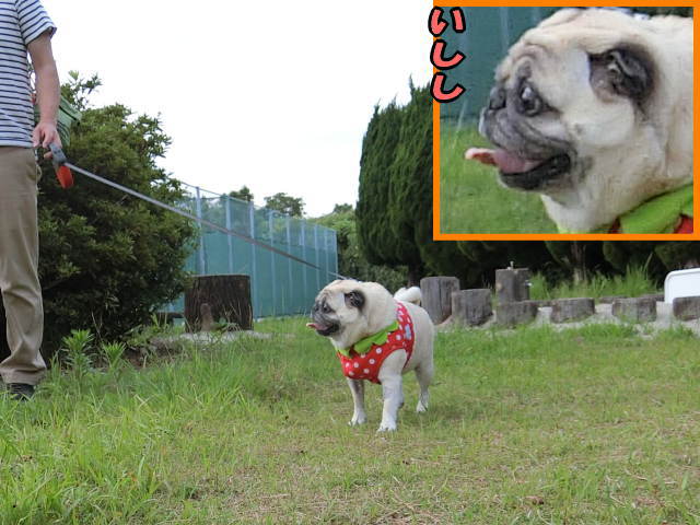 休憩所に近づくと、父ちゃんを見ながらニヤニヤし始めるはなちゃん。