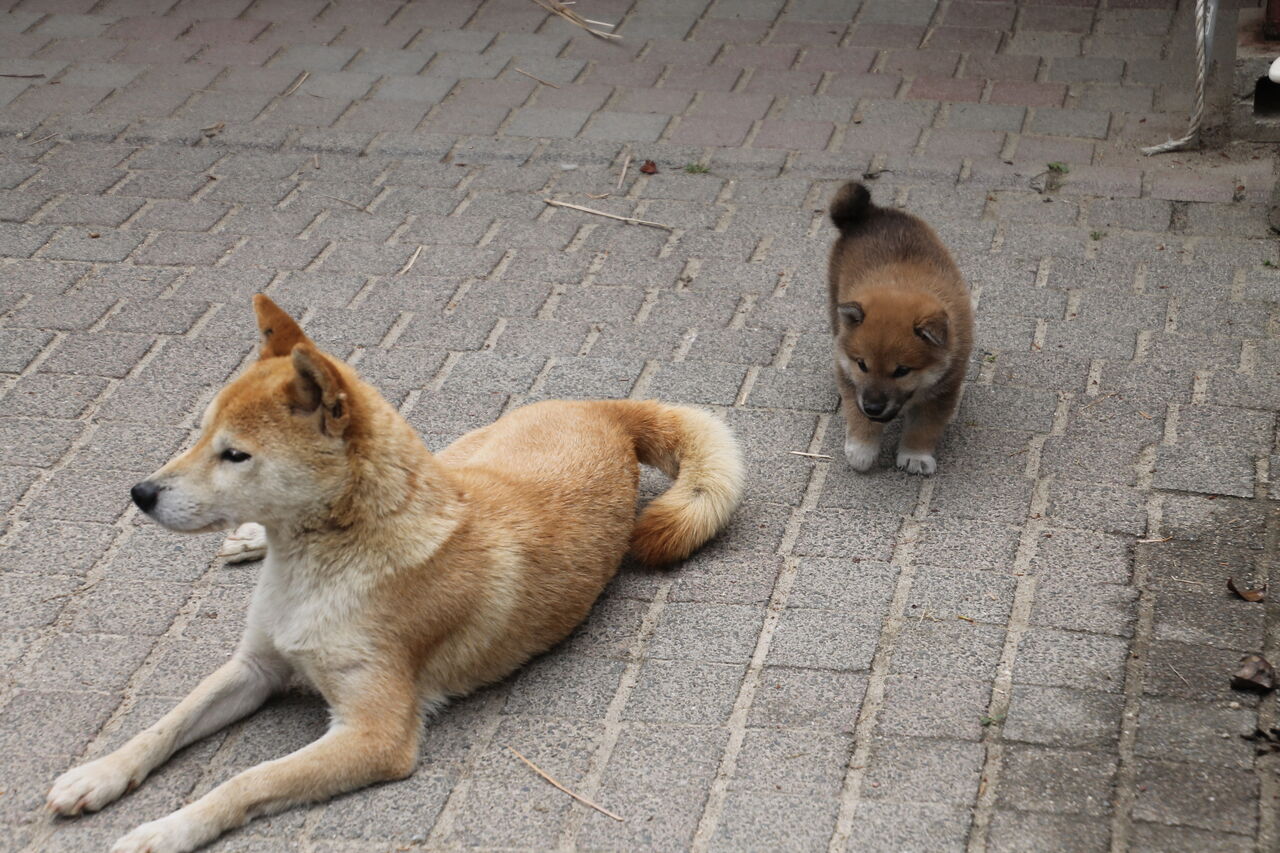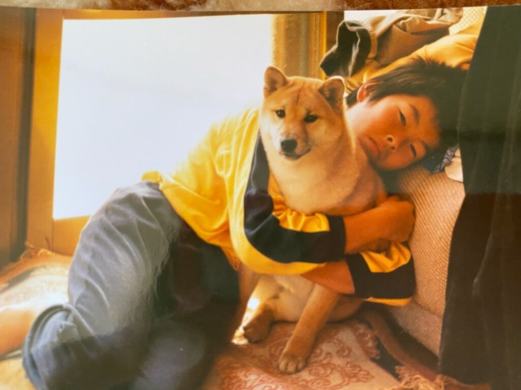 サチです、サチは九州から飛行機で来ましたが、その時に血統書と一緒に「この子は血統構成が良いので、できたら展覧会に出してやってください」のお手紙が同封されていました。「展覧会???」となり、調べようにも手立てもなく、とりあえず日本犬保存会に入会してみましたら、夏の終わりに愛知支部から、封書が届きました。秋の展覧会の案内です。どうしたもんかと悩み、その封書にあった連絡先、当時の専務の前田さんに電話してみました。まったくの素人が出陳しても良いものでしょうか?とそしたなら「もちろん、大丈夫ですよ、当日あなたの犬を私に見せてくださいね。」と言ってくださいましたので、気が楽になり、幼犬のサチと長男とルンルンと展覧会へと行ったのでした。当日は前田さんにも挨拶し、サチを見せて頑張ってくださいといわれ、なにがなんだかわからぬまま、リングに立ったのでした(今思うと冷や汗もの)サチはといえば歯も見せれず(見かねて愛知支部の青山さんが手伝ってくださいましたよ)、リングで調子にのり、穴を掘り、ブレイクダンスを踊り、散々でしたが、皆さん暖かく見てくださいました。幼犬賞はもらえなかったのですが、残念賞として日保の手作り引綱をいただけたんです。それがうれしくて、うれしくて、いつかこれを使ってまたリングに立ちたいなぁと、思いながら帰りました。そして会場の近くに友人がいたのですが、後日あなたの家の近くであった犬の展覧会に行ってきたんだよと電話したら、びっくりされうちの人がいなかったかといわれ、友人がやっているからと、大藪さんを紹介されたのでした。数々のミラクルがかさなり、私は今、作出をしリングに立ち、多くの柴犬とともに暮らしているのです。一つでも欠けたのなら今のこの暮らしはありません。人生はおもしろい。
