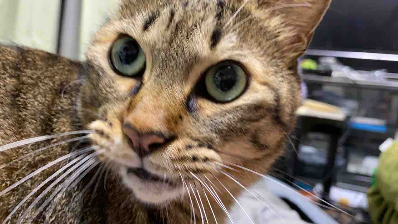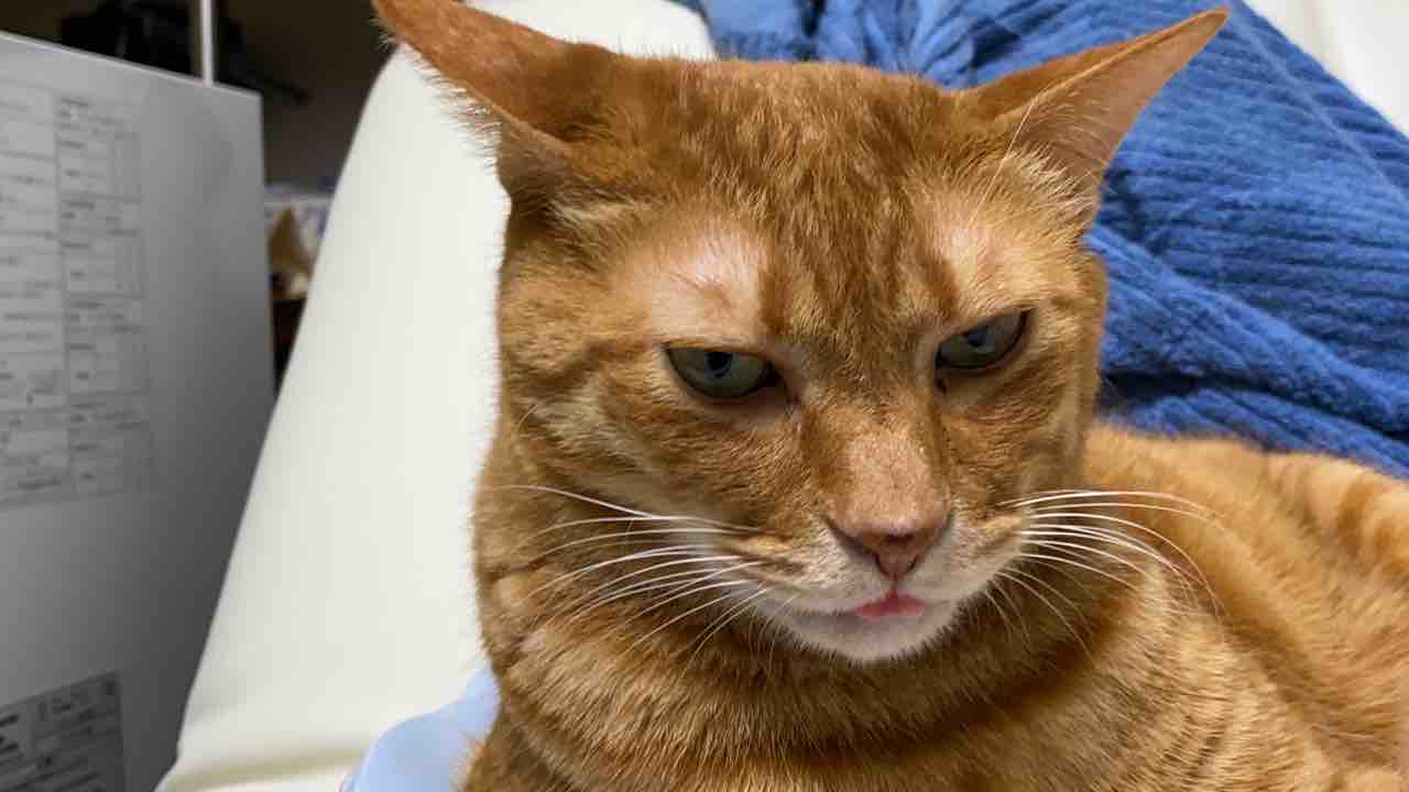 目はかつてないくらいにキメて野良時代を彷彿とさせるのに舌しまい忘れ。