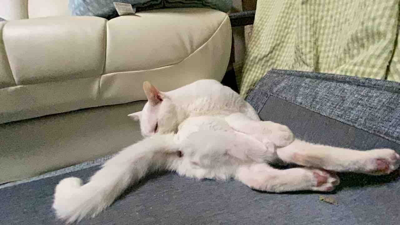 相変わらずの軟体ぷりを見せつける謎グルーミング。