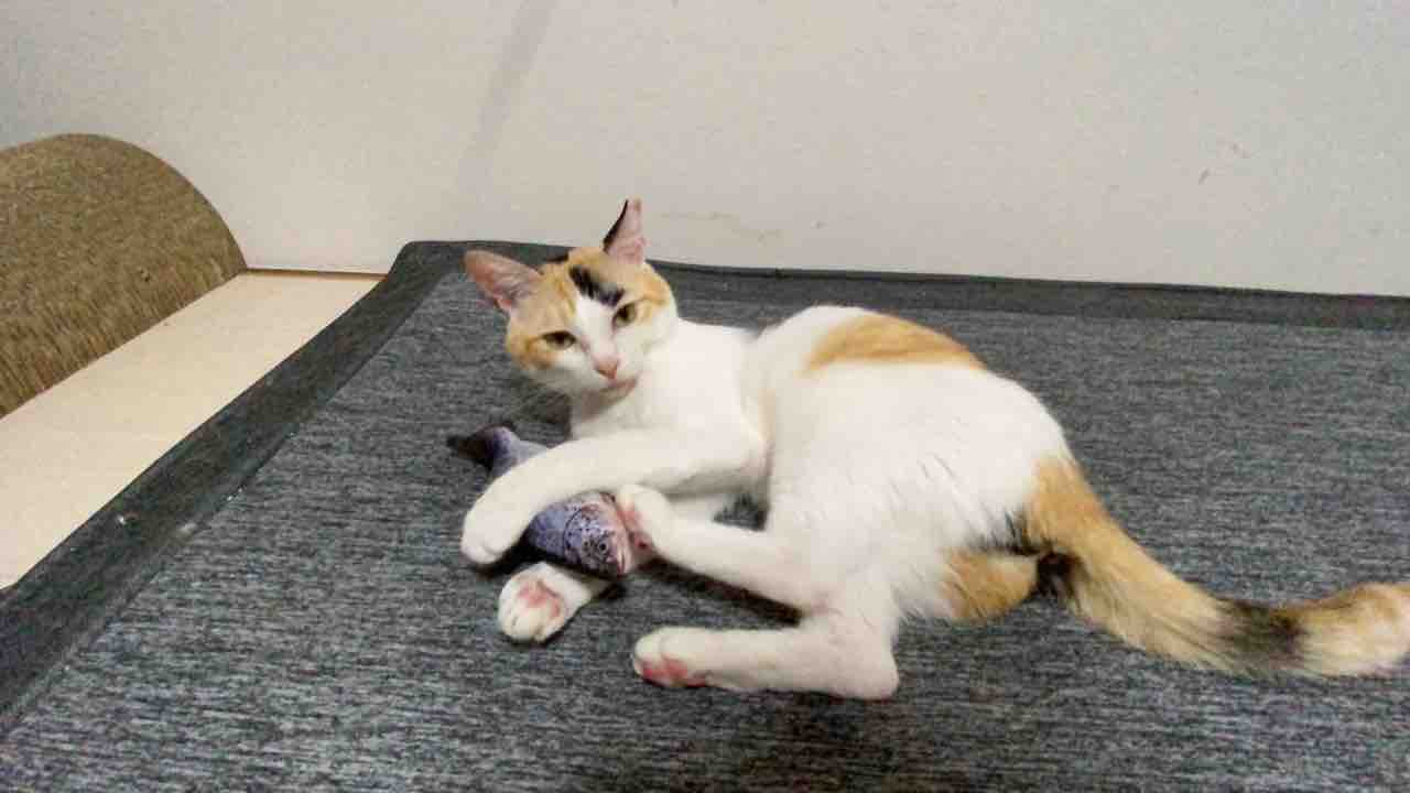 魚のおもちゃでしばらくは遊んでくれそうです。