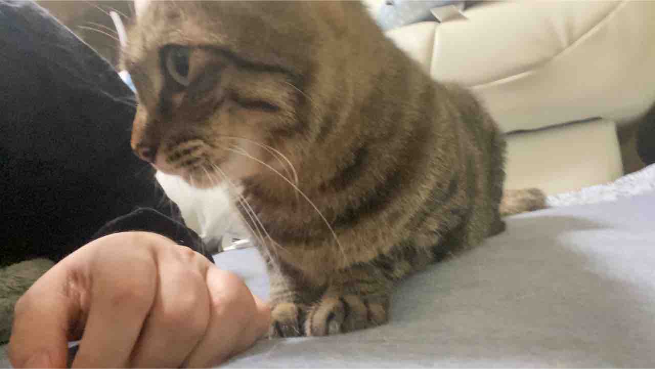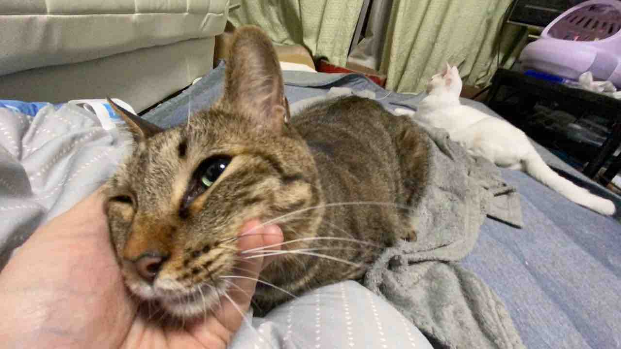 一気に子猫に戻る時雉。時雉はどこを撫でられるというよりぴったりくっついて甘えるというのが好きなのです。つまり、かまってもらえるならなんでもよし。膝上に乗るでも、寝て撫でられるでも。