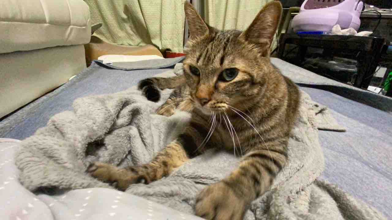 ちびはなんでそんなに真剣に毛布をこねているんだい。