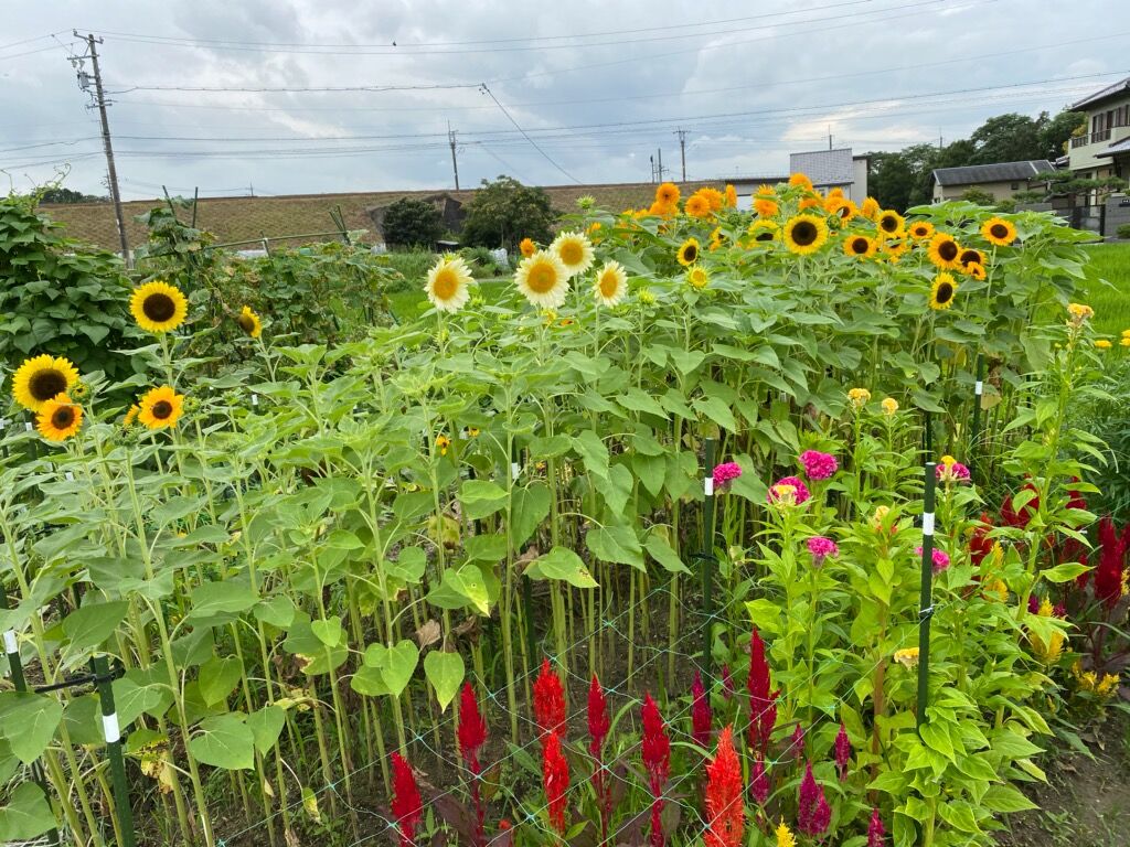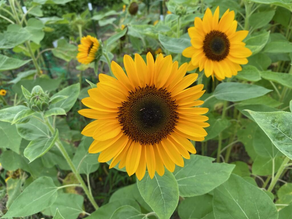 そんな中、散歩コースのヒマワリが咲き始めました。
