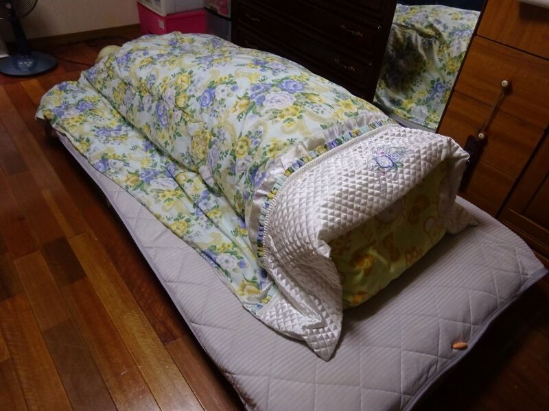 最近、朝のルーチン業務。 寝る前にもう一度、エアコン付けながら掛けます。 からっと、ひんやりが安眠に繋がりますからね。
