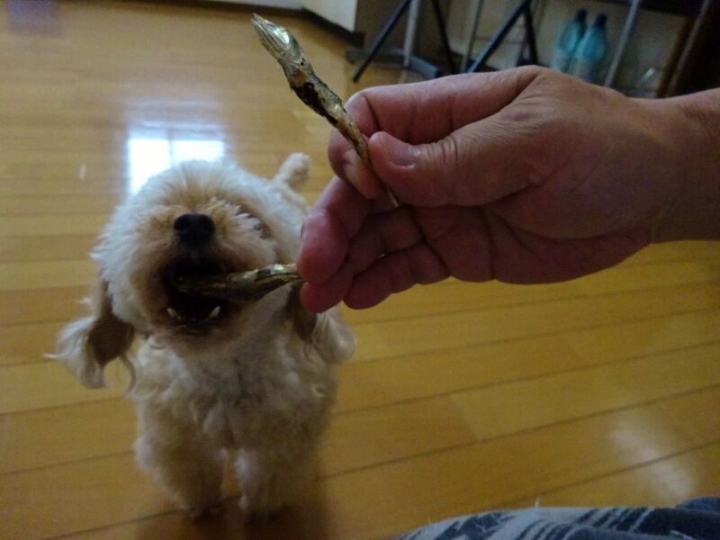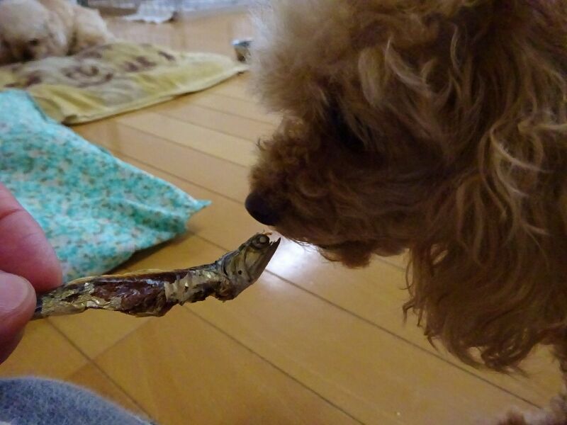 今朝は、チビちゃんたちに猫用のいりこのお裾分けです。