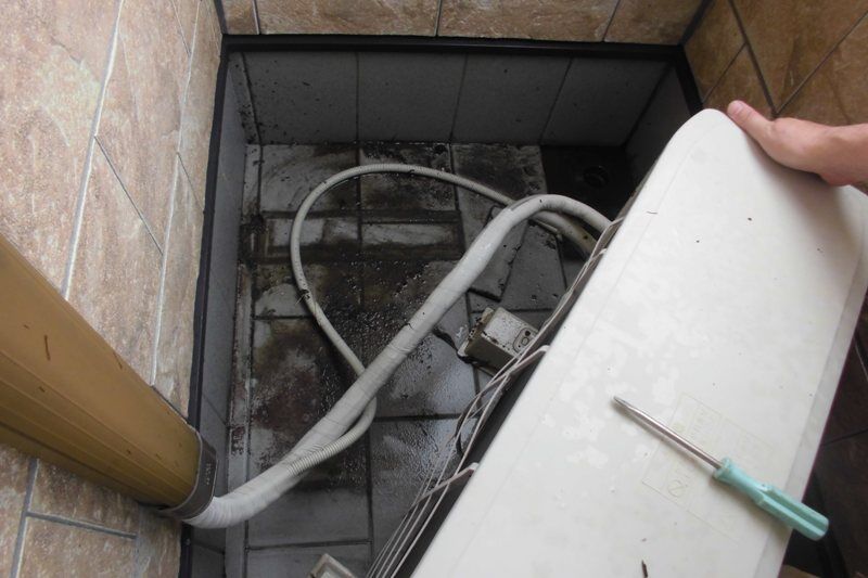 高圧洗浄機で大まかの汚れを流した後、室外機をどかすと