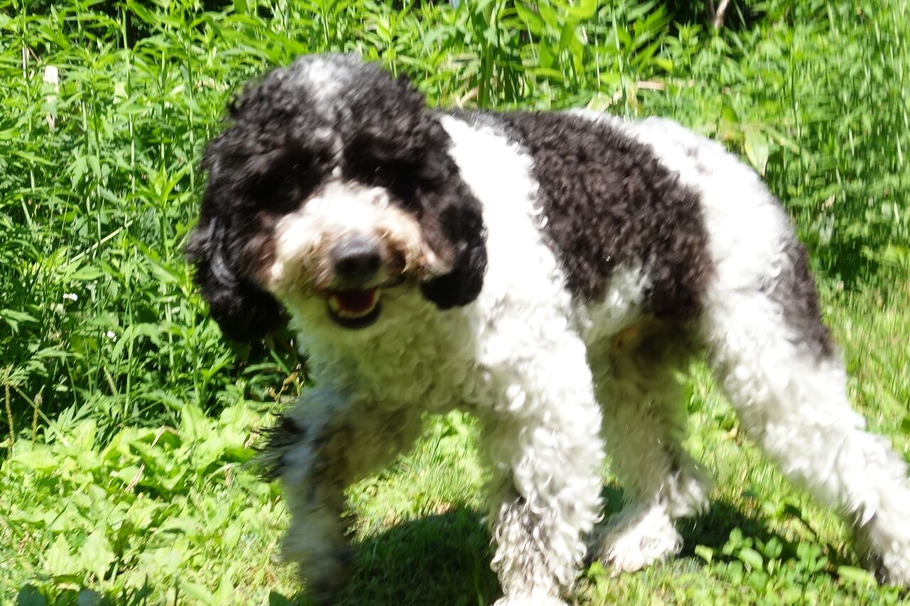 草が光って眩しいのダ