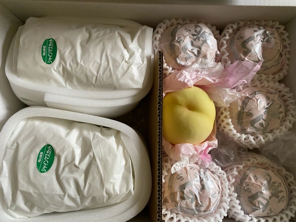 シャインマスカットはおそれおおくて白い紙が破れません。