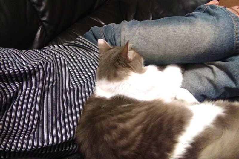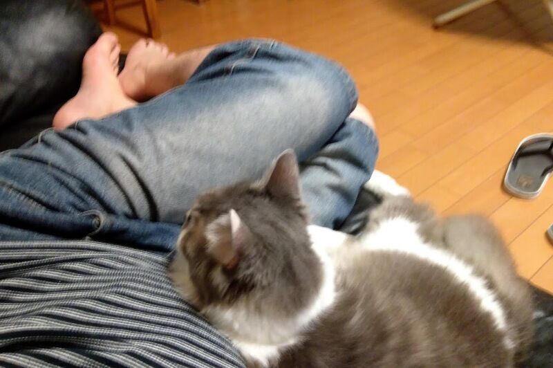 今日はネタもないしブログ休み と思っていたら 珍しいことに、ソファーに寝転んでいるカイ父のおなかのところに潜り込んできた クーラーが効きすぎて寒いぐらいなので こんな時は仕方なくカイ父に頼るのです そして 両手をモゾモゾとしながらカイ父の股の間に潜り込ませるのです 『お父さん,お手手暖めて』なんてかわいいところもあるのです にほんブログ村
