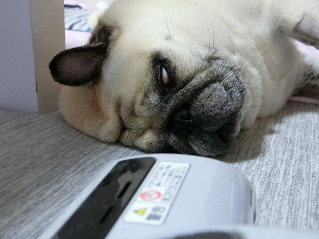 嫌いな掃除機が目の前にあっても爆睡するとは・・・