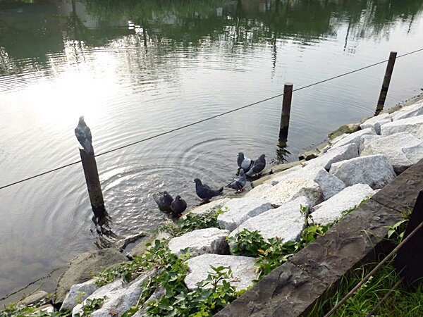 もう何度も,新川で散歩しているのですが,ハトの水浴びは初めて見ました。