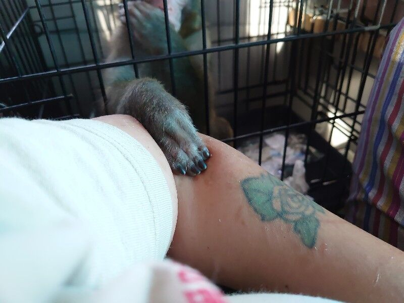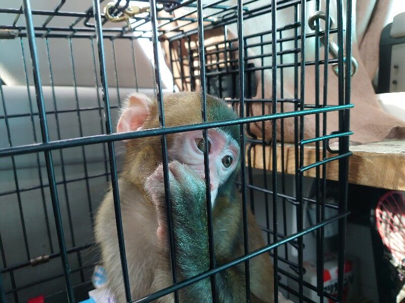 ケージの隙間から手を出し