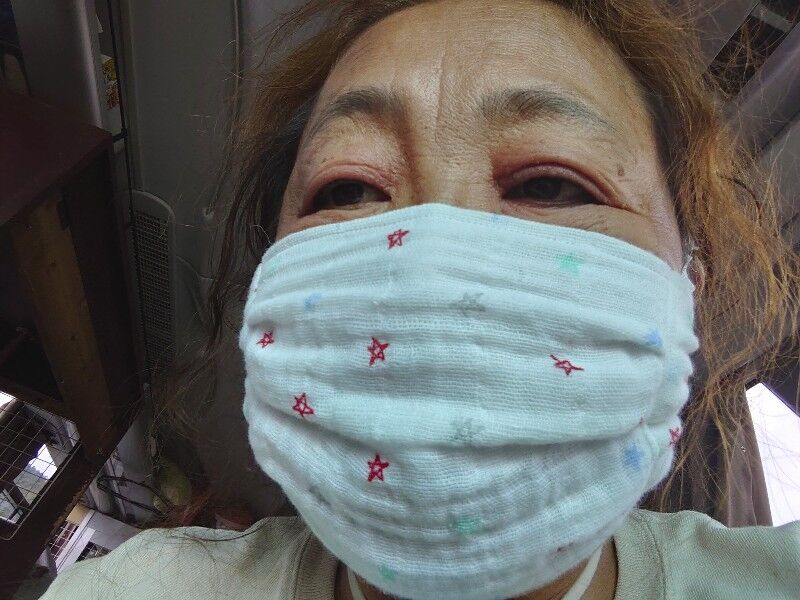 お蔭で今は目の周りが赤く