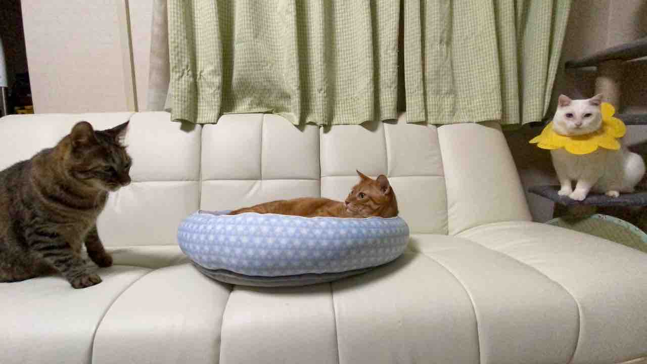 今年はクッションが恐ろしく充実してしまったので、みんな思い思いに伸びたり入って涼んだり。