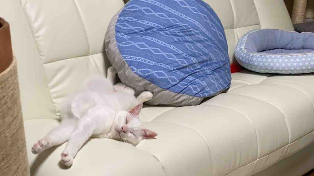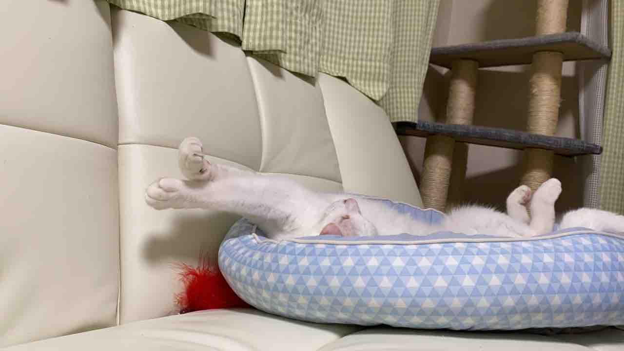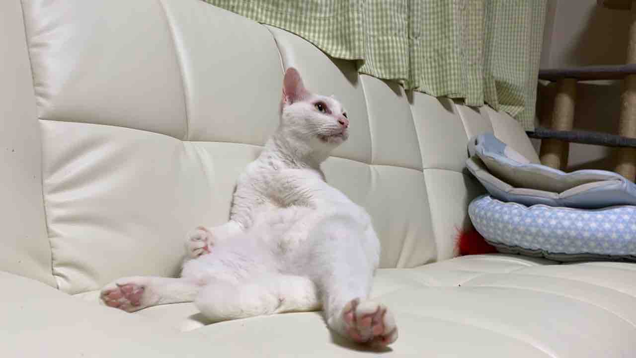 新しいエアコンでそこそこ出力がよくなり、風が届くようになった麿白先生。