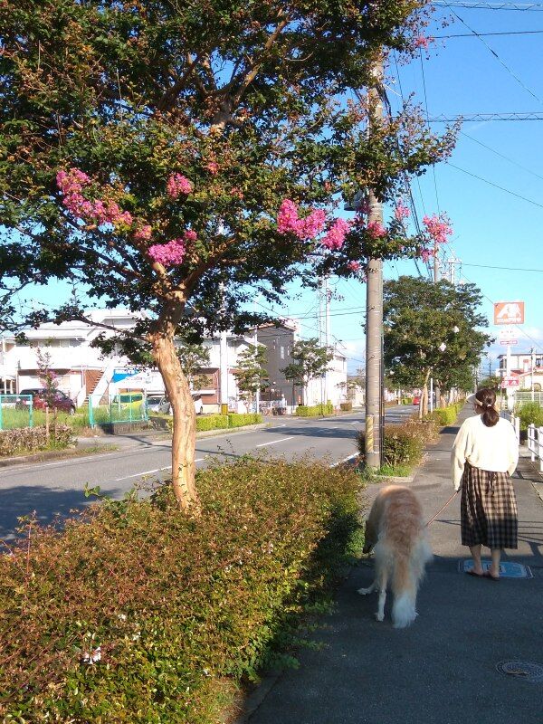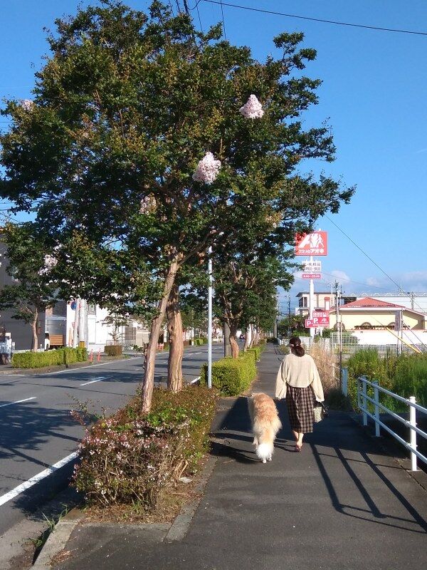アオキの前から海岸までの通りは、サルスベリロードといいます