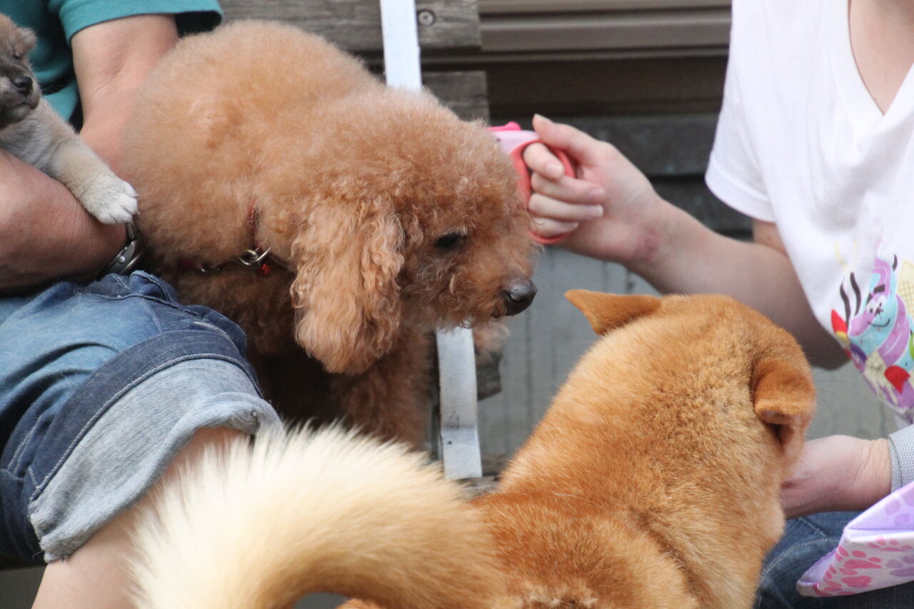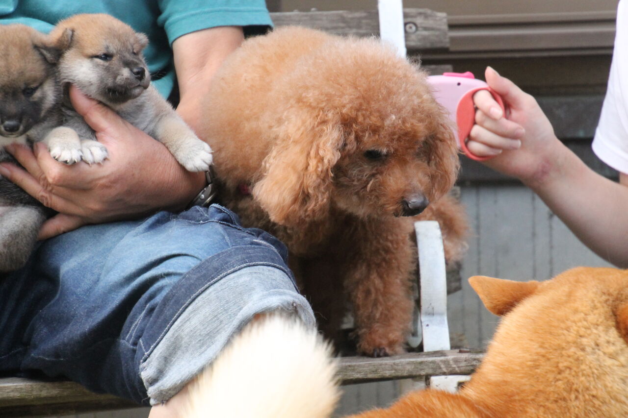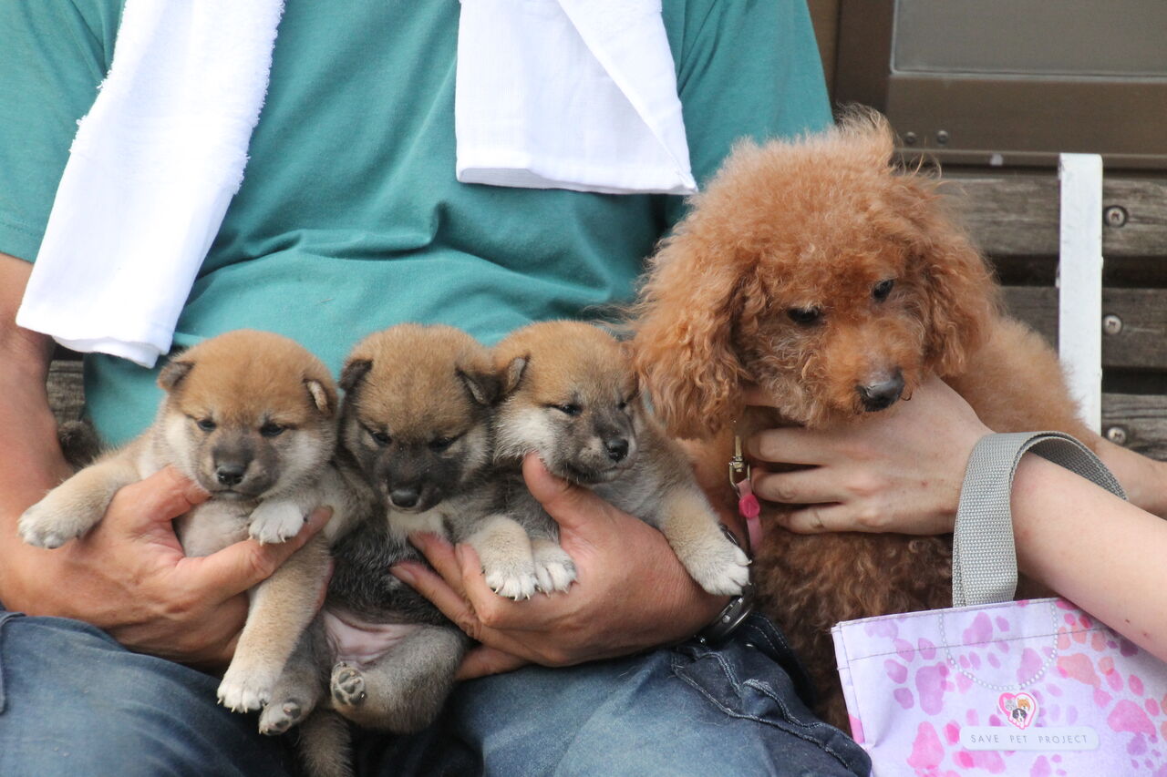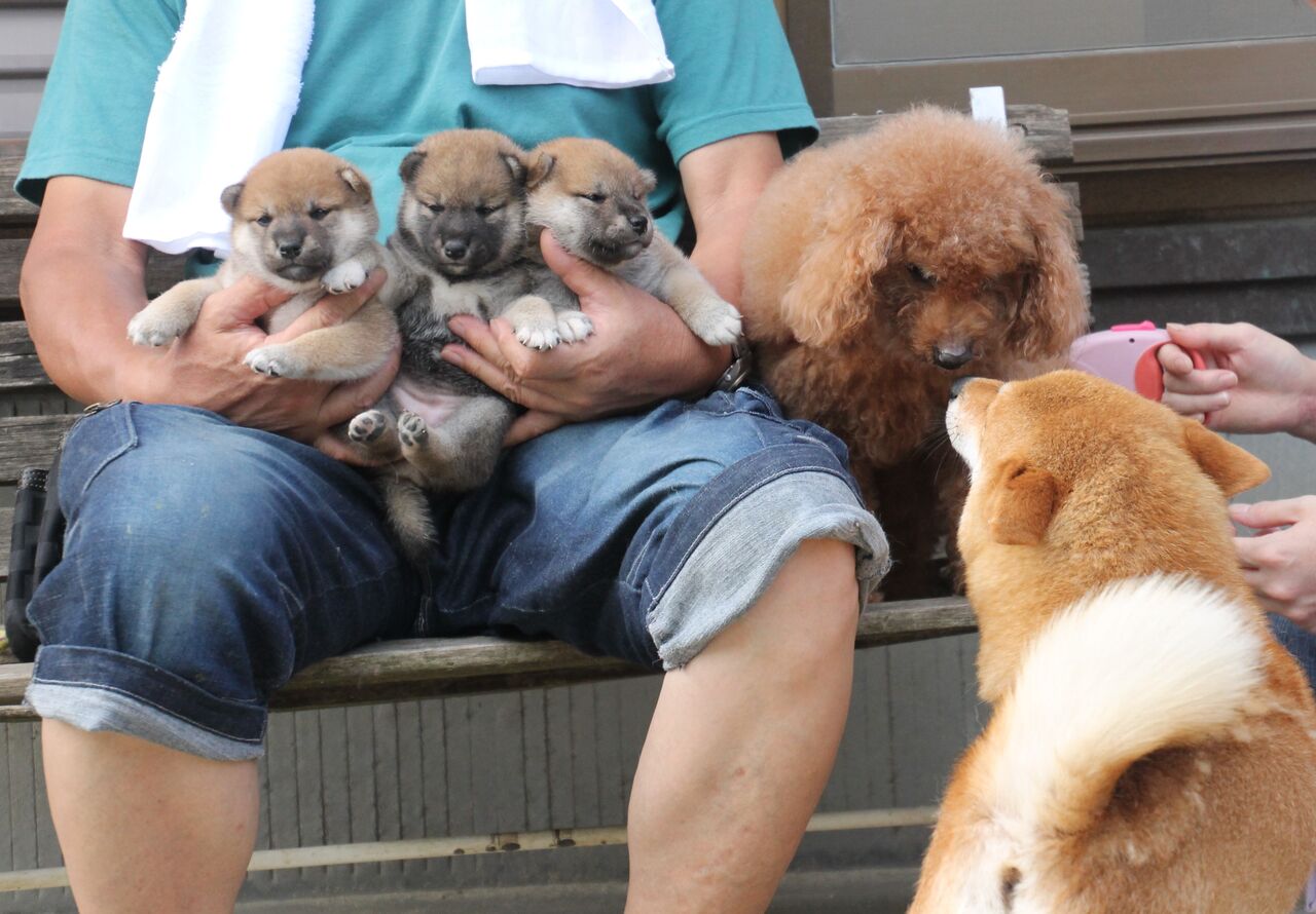 子犬隊と記念撮影