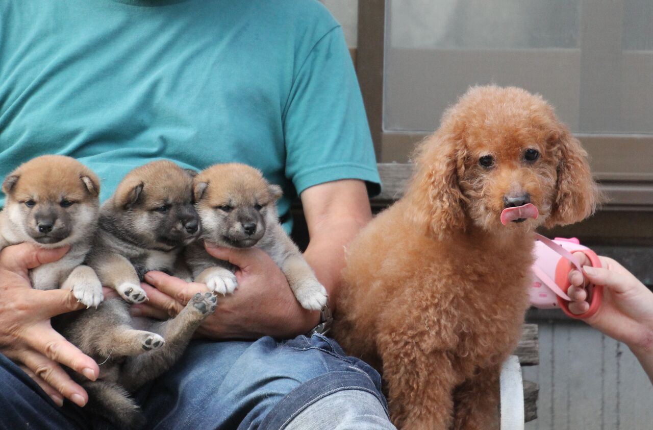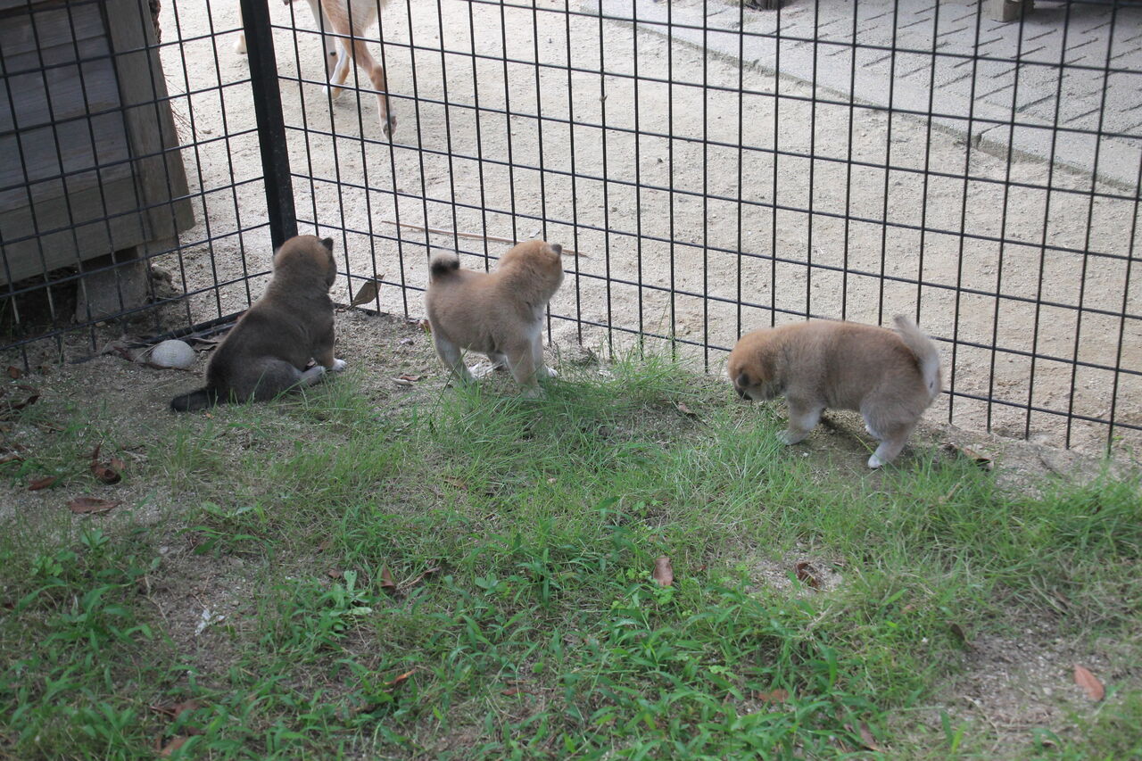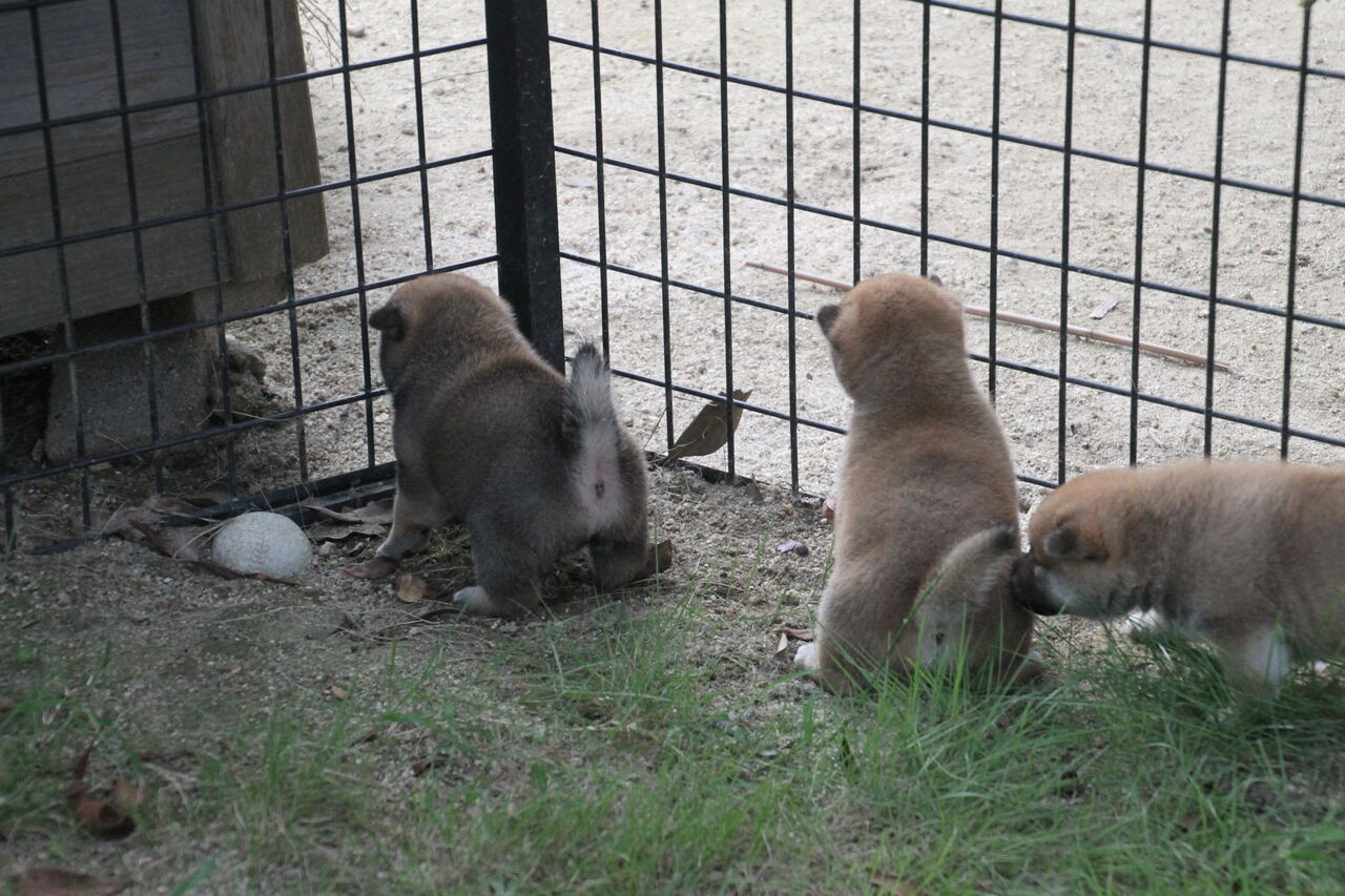ほらほら、子犬隊はポーズ決めてるよ。