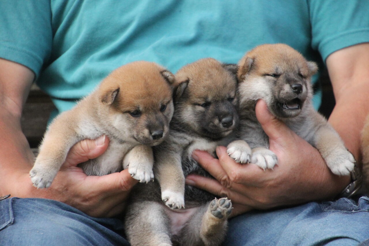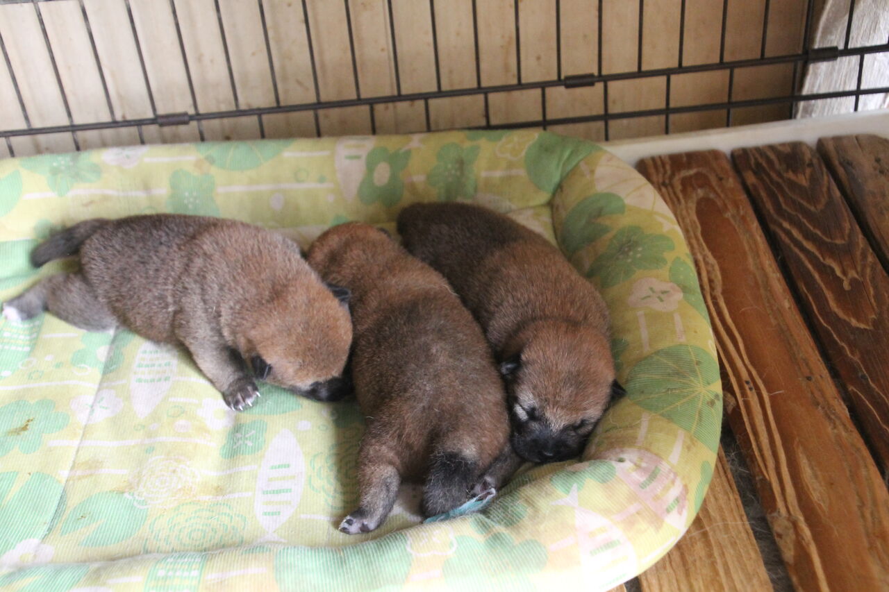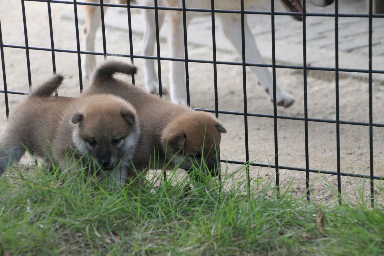 ほらほら、子犬隊はポーズ決めてるよ。
