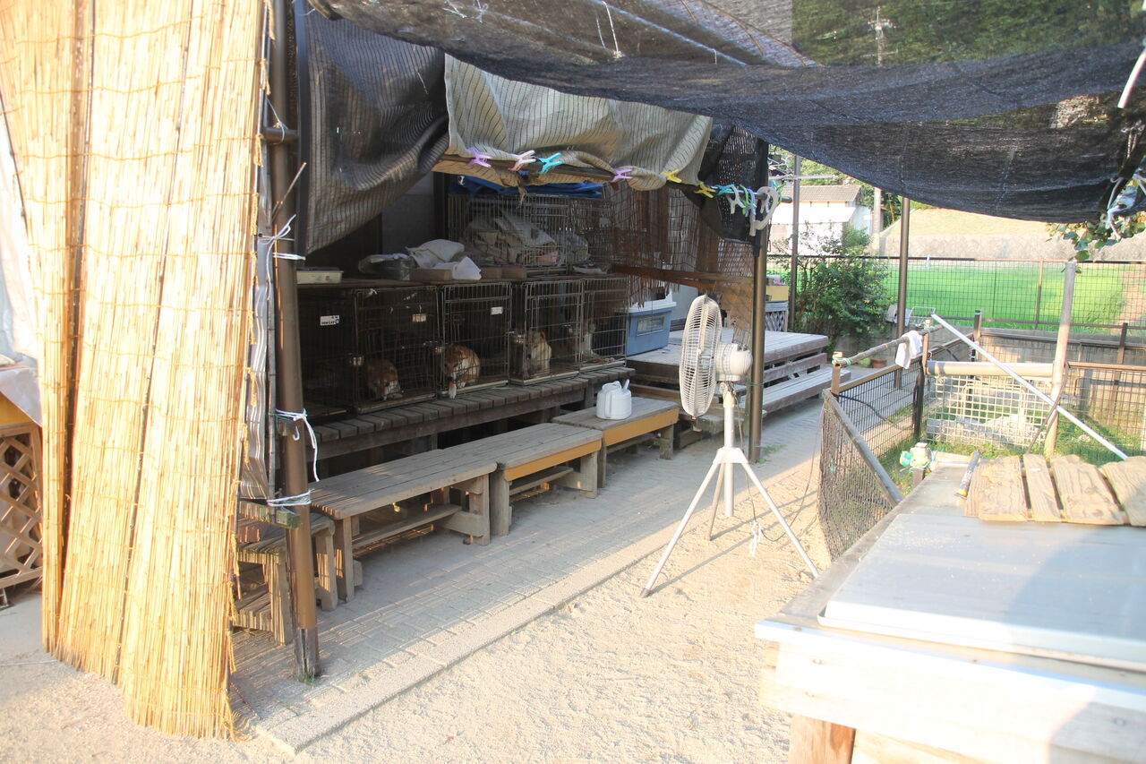 焼け石に水かも、でも気持ちよさげに吹かれています。