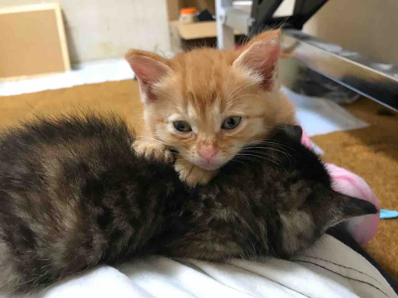 これは段ボールに入れられて捨てられてたのを保護した高校生が、たまたま自分のTwitterのフォロワーでDMをしてきて、場所を聞いたら何度も行った事のある場所付近だったので保護預かりできました。