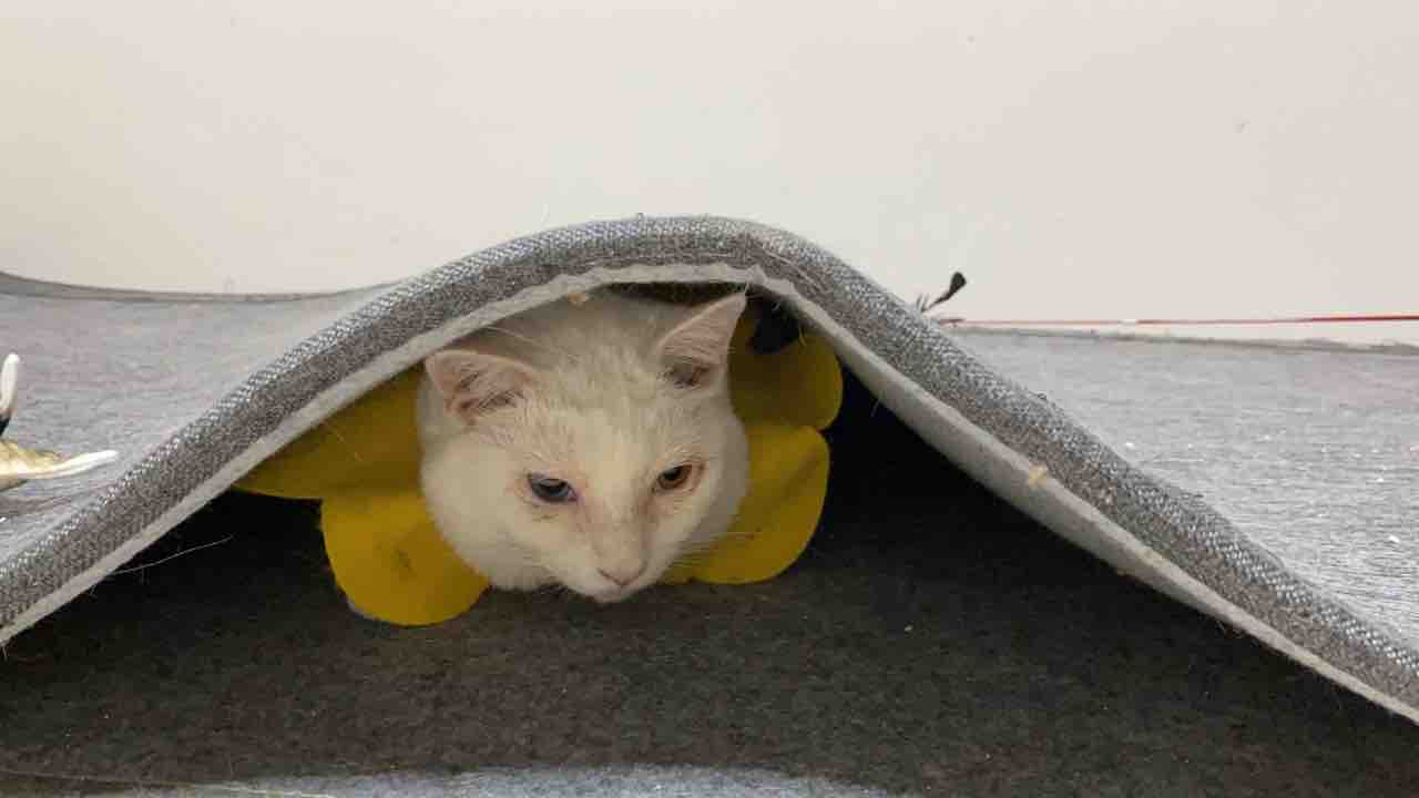 叱られた時や何か物思いにふけるときはラグ下にもぐるのでここもお気に入り。