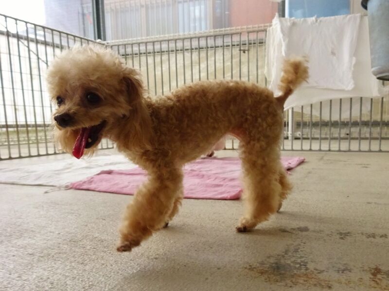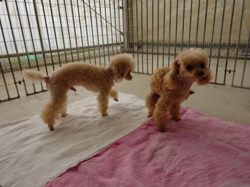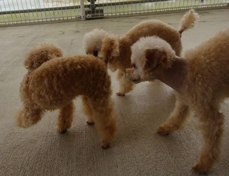 シャンプーの後はトイレですが、皆から匂いを嗅がれていますね。