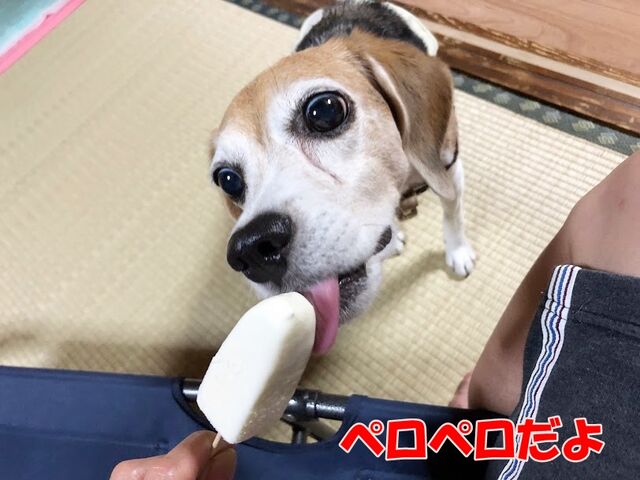 ぴぃこ~~とうもろこしは終わりだからアイスにしよう。