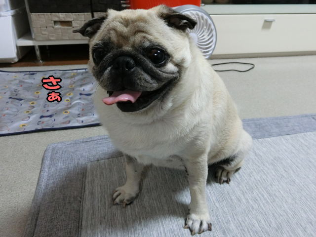 いっちょまえに散歩の後にご褒美であげているワンコシャーベットを