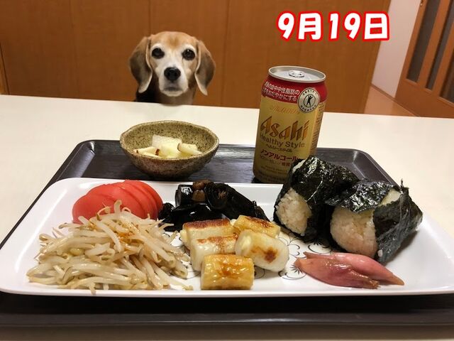晩ご飯におにぎり。なんでそうなったか記憶喪失。