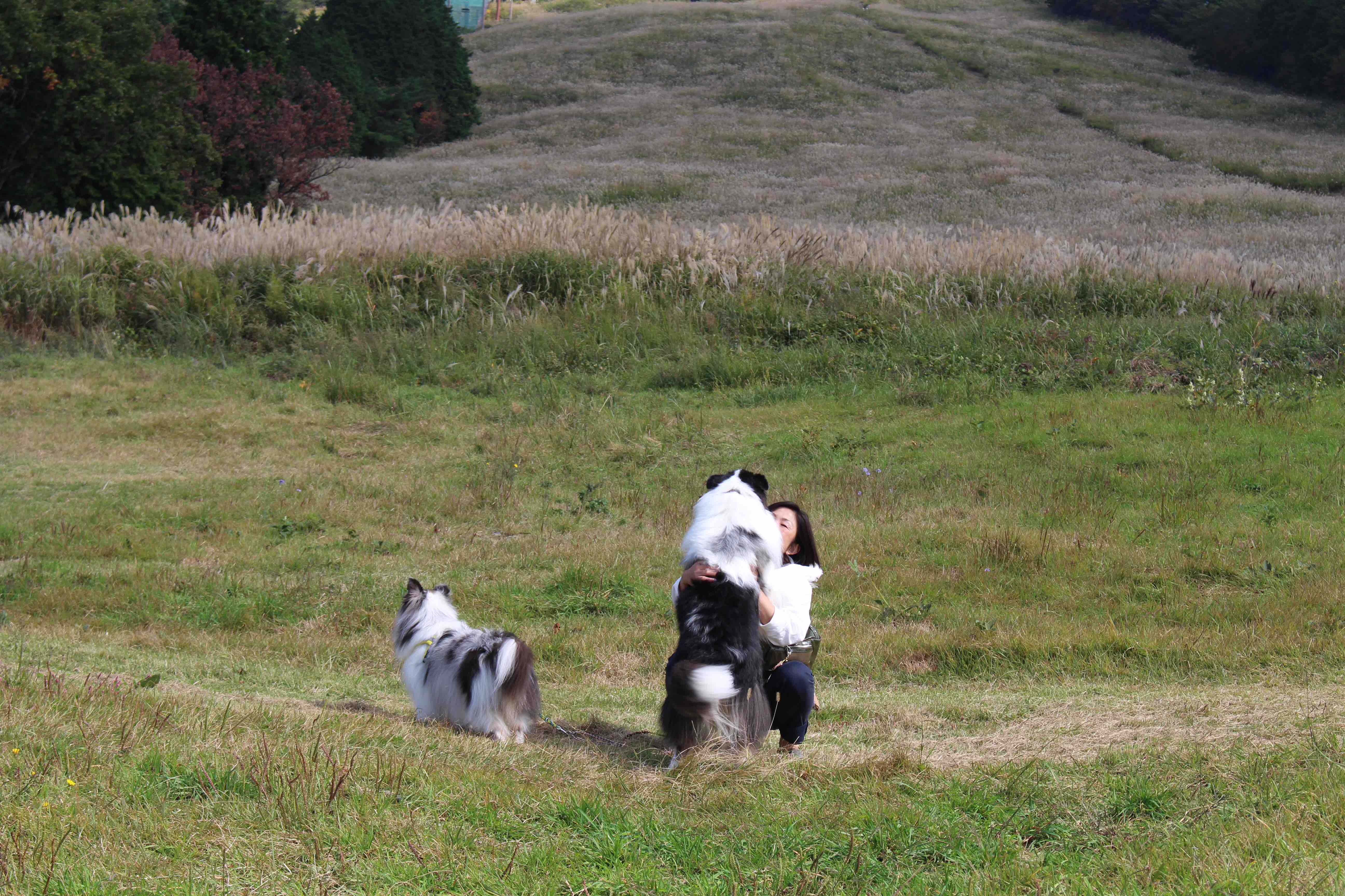 ますみず高原でセクシーDAISENを背景で! ミロちゃんはあまえっこ~いいこいいこ 仁王立ちしてなに見てんのよ・・・ ユキちゃんにめんち切ってた。 ペーターが怒ってくるわやめんか。 愛すべき暴君ゆらぼん。 シカの大群にめんち切って立ちはだかる姿を見て、このバカは私が守らねばと改めて気を引き締め思いました。