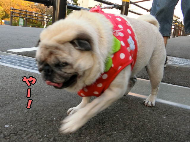 父ちゃんの抱っこをスルーし頑張るはなちゃん・・・