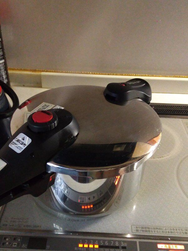 圧力鍋が沸騰して蒸気が噴き出したら火を止めます