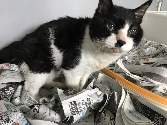 保護犬、保護猫のトイレなどにたくさんの新聞を