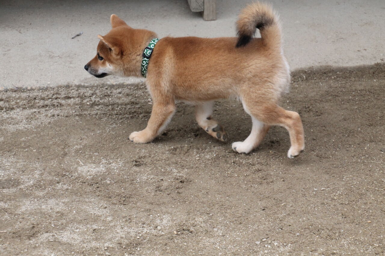 お散歩デビューをしたならば、むやみにほかの犬にちかずけてはいけませんとか、「挨拶させてもらってもよいですか」と声をかけて了承していただけたら、近づけるとか、獣医さんにワクチンに行ったら、爪の手入れもしてもらうと良いですとか、この時期に多いのが落下の事故なので、子供さんが抱っこするときは座ってとか、抱き方やら、マズルコントロールの仕方やら、タオルでの拭きあげの仕方とか、もうね、実際にやってもらわねば話しても伝わらないことは、成長に合わせて時折来ていただいて、やって見せるのが一番と思うのでね。金ちゃんの子だから、素直な性格と思います。根に持たないあっけらかんの子と思うので、上手に躾て楽しい柴ライフを送ってほしいのです。