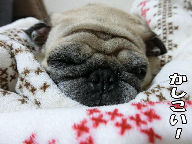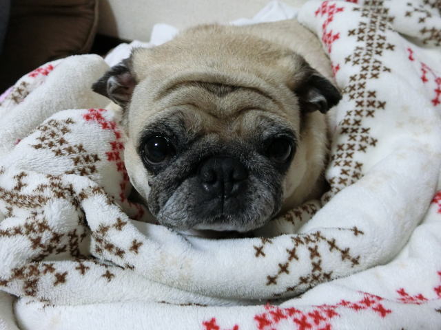 毛布の使い始めは親バカ度が一気に上がるはなパグ家であった。