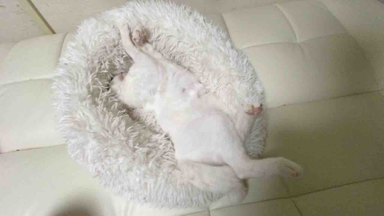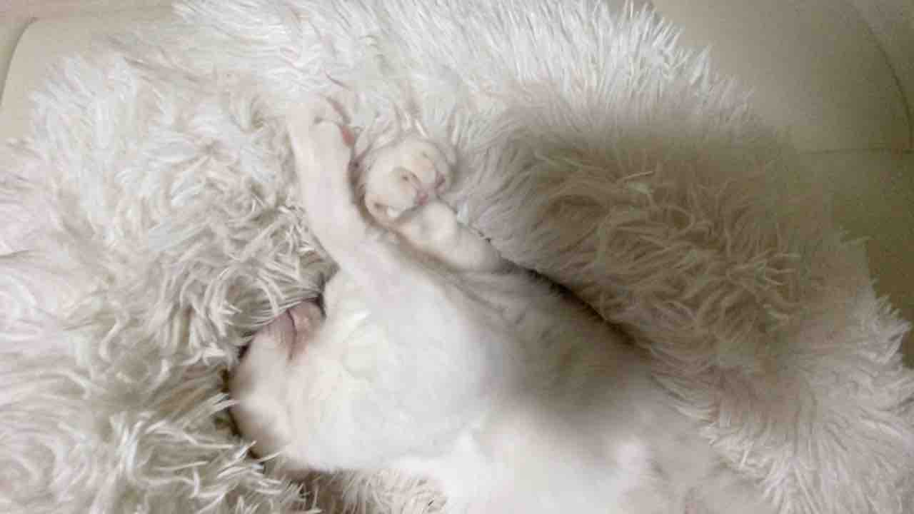 と思ったら、ふかふかクッションで反って顔が埋もれる謎寝相。