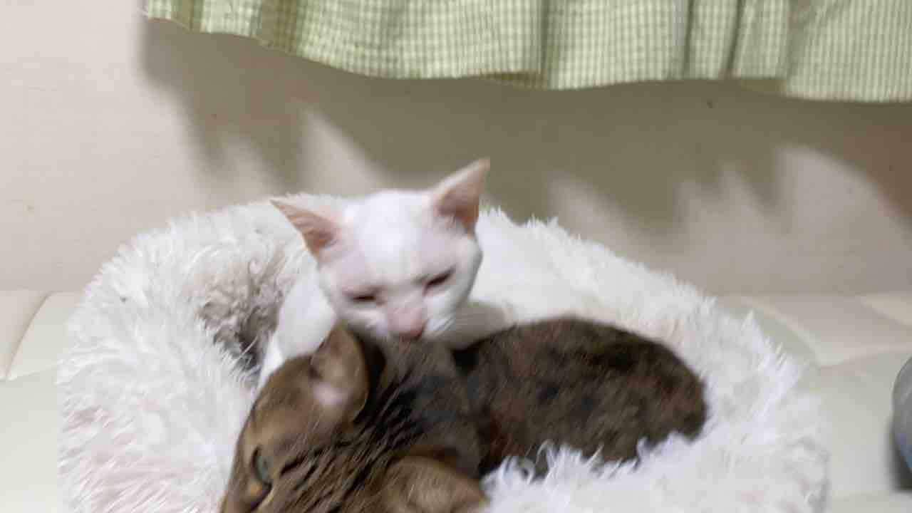 といいつつも最近はこのモチモチクッションでよく猫団子になってる麿白先生と曉璘。