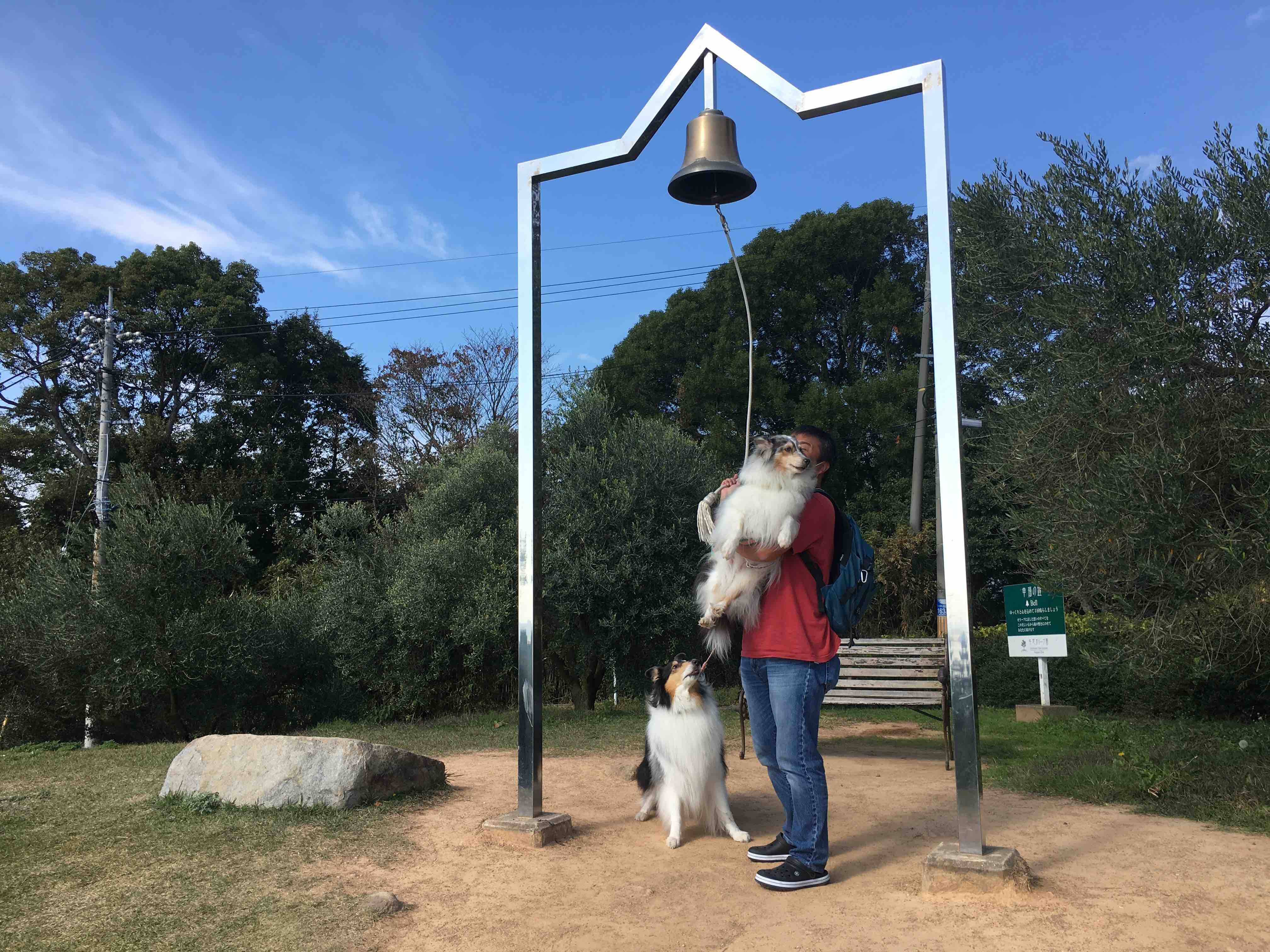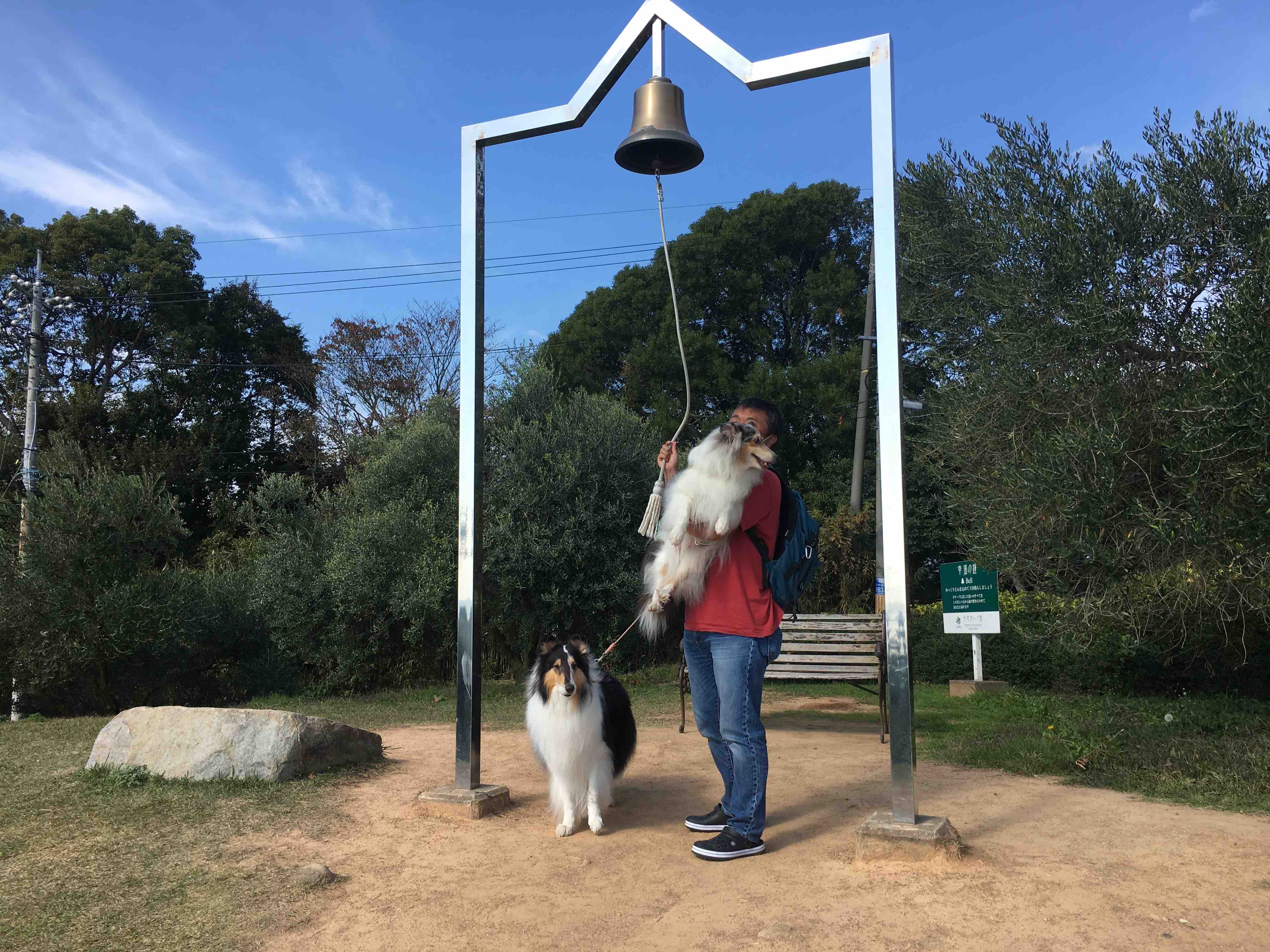 鐘付き男inオリーブ園。 犬連れたままコーンといきました。最低。 (タップするとゆらとミロのげんなりした顔がアップで見れます)