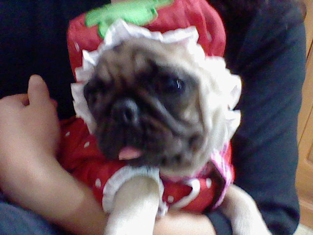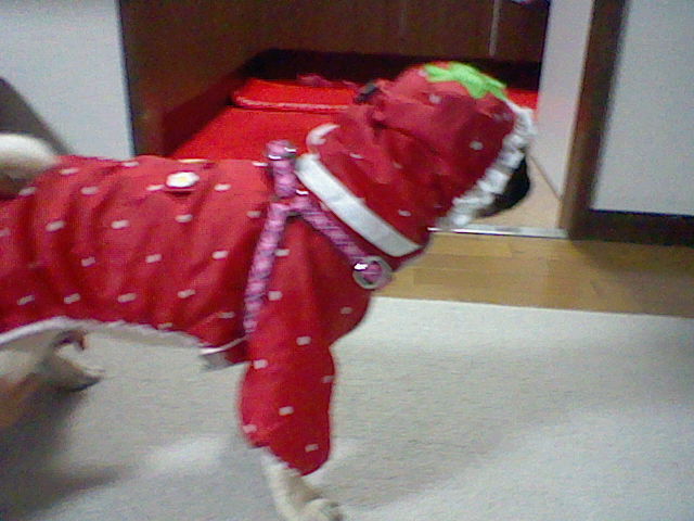 はなちゃんが赤ちゃんの時に着ていたカッパはイチゴのカッパ。