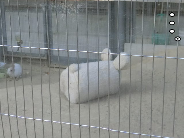 うさぎ小屋の前で新しい子がいることに気づきました。