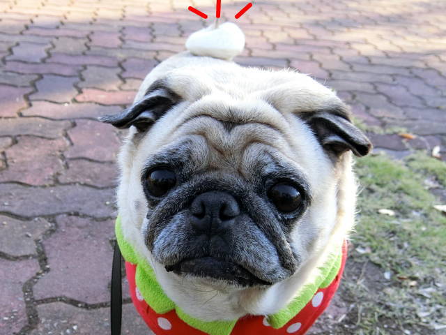 はなちゃんのくるりん尻尾が頭に乗っているかのように撮れた時。