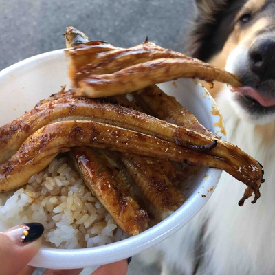 道の駅でお昼のあなご丼。 ばえて綺麗に撮ってたら、ミロちゃんはこのままそー・・・っと1本吸い込んでいった。 ミロは怒られない子です。人徳というか。 行動が控えめでいつもそーっとしいてるから。 これがシェルティたちだと、うおりゃー!おんどりゃー!いけー!とあなごに突っ込んでくるため丼は吹っ飛び私に胸ぐらつかまれ叱られます。 ミロだと、あーあ・・・ミロちゃ・・・で終わる。