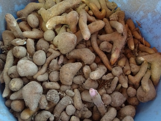妻が花壇を整備していたら、グロリオサの球根が沢山出て来た。